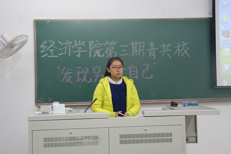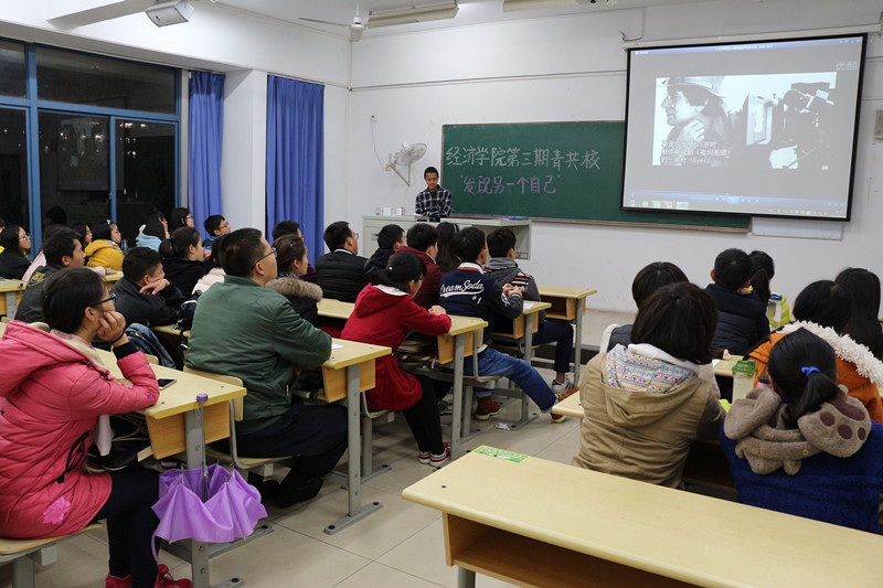 11月23日晚6:30,必赢76net线路官网分团委秘书处在教4-105开展了第三期青共校第二次交流会。本次交流会邀请了2014级国际经济与贸易4班的李晓琛同学为大家讲述他的自由行经历。分团委秘书处实践创新部部长叶茂坤,宣传调研部部长宋佳,宣传调研部副部长孙轩宇、祁鑫与2015级青共校学员参加了本次交流会。