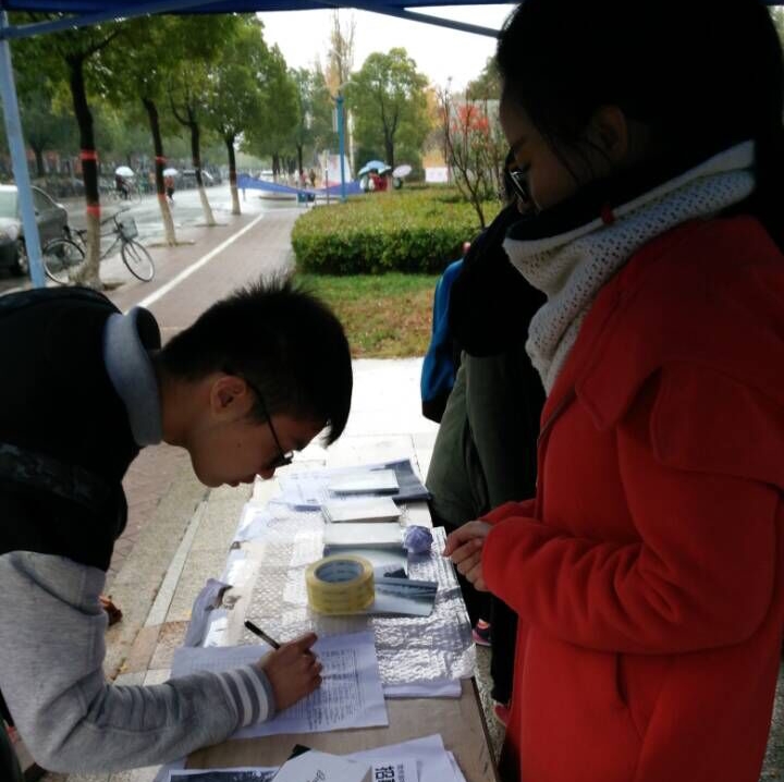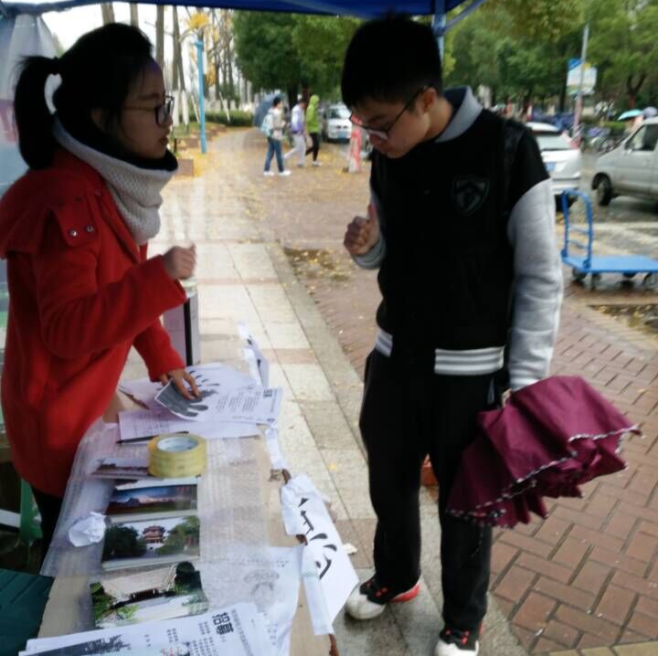 11月24日,必赢76net线路官网青协进行了雨花台讲解志愿者招募外场摆设。为确保陵园的服务质量不降低,生态环境标准不降低,雨花台烈士陵园联合共青团南京团市委,南京市志愿者协会,开展“红色志愿者行动”,面向全市招募符合条件的志愿者,经培训合格后,参与陵园的服务工作。经院青协摆设外场来宣传雨花台讲解招募志愿者活动,不仅仅弘扬了革命精神,也为想要报名参与的同学提供了便利。