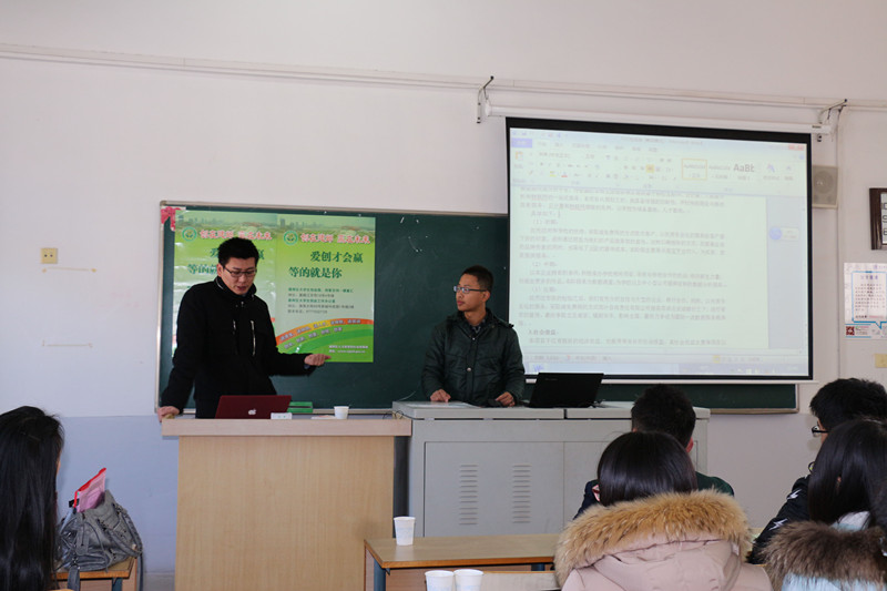 本次活动由分团委书记吴波老师主持他向大家介绍了到场嘉宾,并说明了活动的重要意义。建邺区人社局相关负责人曹旌女士为大家全面地讲解了当前的创业情况,并传达了建邺区大学生创业的相关政策。创业导师吴思雨作了重要演讲。他简要讲述了自己的创业经历,重点指导同学们如何参加创业大赛,掌握答辩技巧,赢取创业奖金。他强调,一份完整的创业计划书、一个良好的资金运作计划和项目的应用价值十分重要。