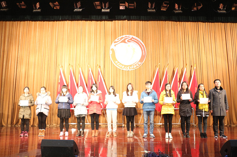 12月14日,必赢76net线路官网在青春剧场举行2014级年级大会。本次年级大会以“学榜样,守诚信”为主题。必赢76net线路官网2014级辅导员吴波老师参加了本次年级大会。本次年级大会由戴文婷主持。