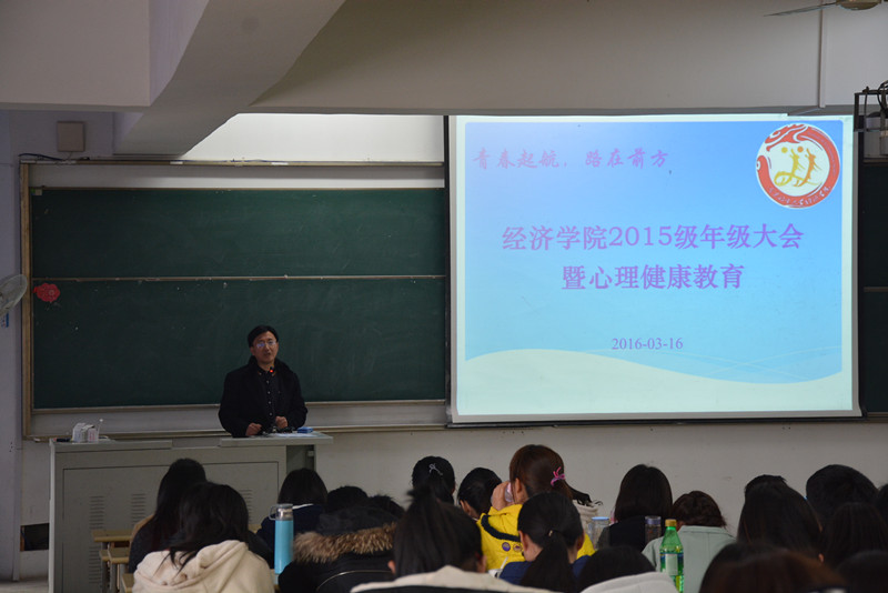 接着,王老师为2015级学生开展了心理健康教育。他介绍了三种大学生常见的心理问题,包括生活适应问题、学业问题以及人际交往问题。王老师在谈这些心理问题的同时,针对性地提出了有效的解决办法,对同学们起到了很大帮助。