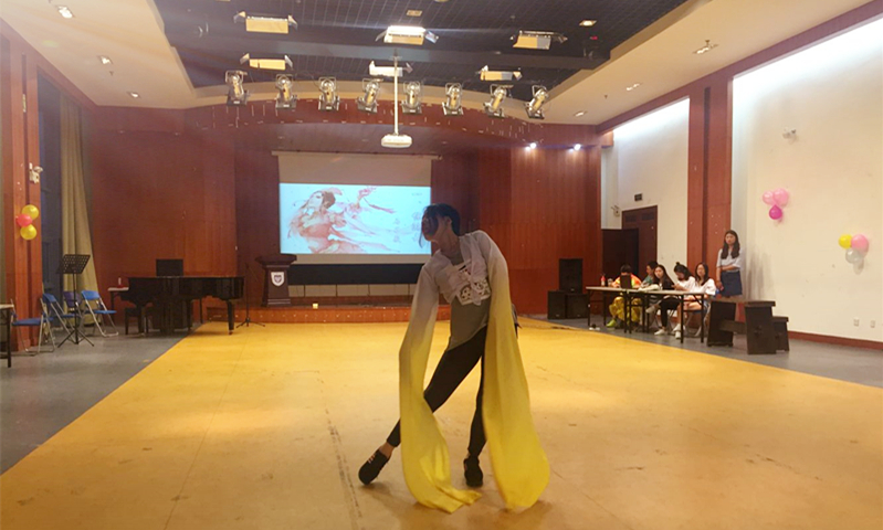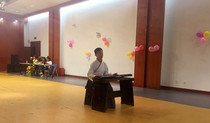 在评委打分环节,14级的闵陈震同学用古琴为大家演奏了一首悠扬委婉的乐曲。经评选,刘颖同学的情景舞蹈和舞狮组合的《小苹果》分别获得了本场比赛的冠、亚军。