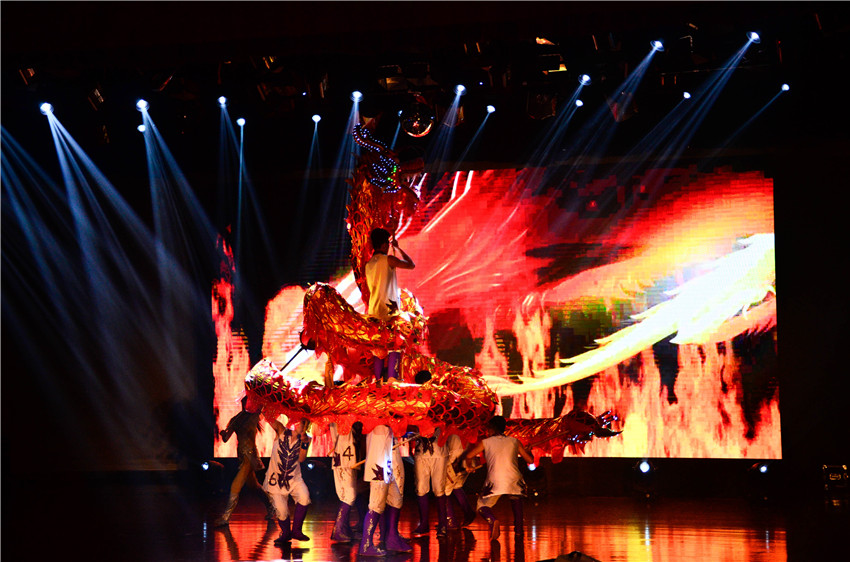 下篇“ 狂欢不眠夜”中,由Dominate电声乐队带来活力四射、激情洋溢的开场曲,给同学们带来了一场音乐盛宴;858街舞社和2016级经统五班选送的《858 popping team+Freaks》,动感十足,活力四射,与音乐完美融合;小品《艺考那些事儿》妙趣横生,将晚会又一次带入高潮;由拉丁舞协会选送的拉丁舞表演《merry》,每一名舞者都展现出她们对拉丁舞的热情,气韵灵动的舞姿展现了独特优雅的个人魅力;2016级新生选送的吉他弹唱《high-fy》,经典老歌唱不停,超强的感染力嗨翻全场;学生会节目《没有票抽不中奖的中干们》引爆全场气氛,对每一位在幕后辛苦筹备晚会的学生会中干表示感谢;晚会在龙狮团精心编排的水鼓表演《水鼓中国龙》中落下帷幕。