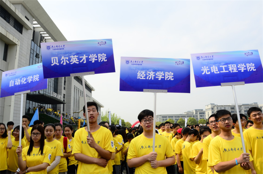 健身跑行程连接三牌楼校区、锁金村校区、仙林校区,分精英跑、接力跑、校园跑、线上跑四种形式。精英跑和接力跑的跑道起点设在三牌楼校区女篮雕像处,终点设在仙林校区图书馆,途径玄武湖公园、锁金村校区、白马公园广场、中山陵景区、仙林大道等,全程约29公里。其中,精英跑选手跑完全程。接力跑共设19个站点,由18个学院和师生联队组成的19支队伍接力跑完全程。校园跑为仙林校区校内绕跑一周4.2公里,寓意南邮建校时间为1942年。线下跑共有5000余名校友、教职工、学生参加,其中精英跑50人,接力跑850人,校园跑4000余人。线上跑地点不限,各地校友通过咪咕善跑APP实现在同一天跑步,共祝校庆。