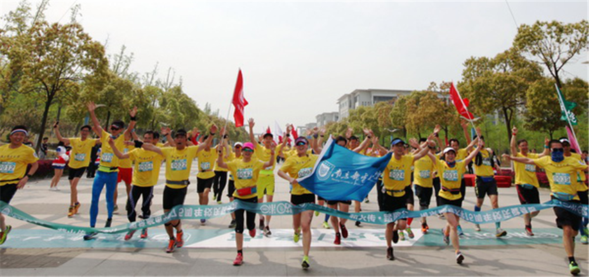 4月16日上午7点整,作为“薪火传•踏歌行”必赢76net线路官网75周年校庆健身跑活动的重要组成部分,线下健身跑活动在三牌楼校区启程。校长杨震发令枪响后,全体精英跑队员和接力跑首站管理学院的同学们冲出起跑线。校庆健身跑起跑仪式由副校长王国平主持,校党委书记刘陈发表了热情洋溢的致辞。