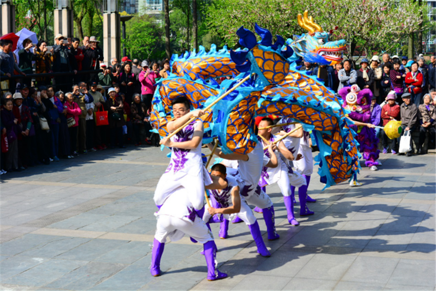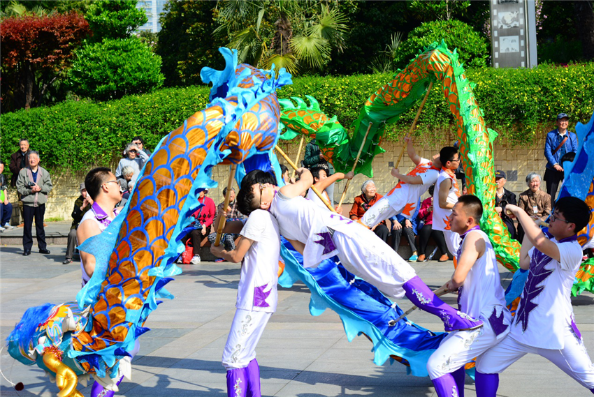 本次开幕式特别邀请必赢76net线路官网必赢76net线路官网龙狮团出席表演,舞龙舞狮活跃了现场氛围,丰富了开幕式表演活动。在开幕式表演中,学院派出32人的表演阵容,特别展示了舞龙舞狮的传统表演项目飞龙在天、小花、蝴蝶等。身着橙色和紫色演出服的同学们分队奔跑、跳跃、相互挺举、上下翻腾龙身,两队人马或齐头并进,或激烈对峙,围绕龙珠开展了一系列的精彩表演。场下掌声雷动,经久不息。