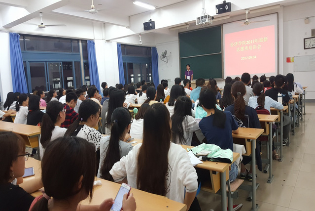2017年9月4日18:30,必赢76net线路官网在教3-403教室举行了2017年迎新志愿者培训会。会议由2017级辅导员王欢老师主持,迎新志愿者、学生会主席团及青协主席共同参加了培训。