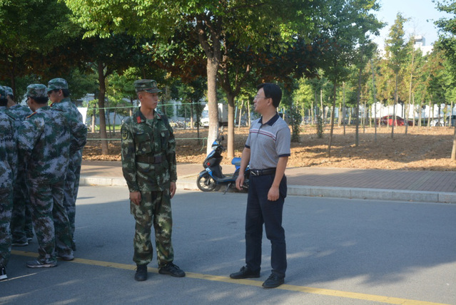 2017年9月14日下午,必赢76net线路官网党委董军副书记到必赢官网新生军训训练场看望教官和学生。