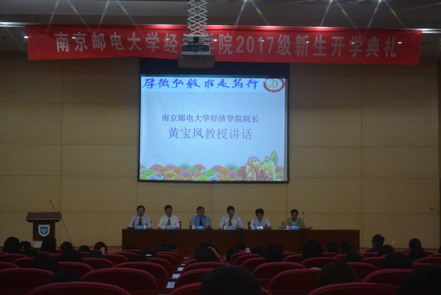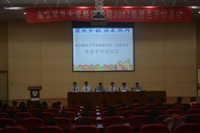 2017年9月24日14:00,必赢76net线路官网在仙林校区图书馆报告厅举行了2017级新生开学典礼。必赢76net线路官网党委副书记、纪委书记朱永平教授,必赢76net线路官网院长黄宝凤教授,必赢76net线路官网副院长王子敏副教授,必赢76net线路官网院长助理蔡冬青副教授,必赢76net线路官网经济系系主任陈伟民教授,以及各年级辅导员出席了本次开学典礼。各班辅导员助理,2017级221名本科新生和19名硕士研究生新生参加了本次开学典礼。开学典礼由必赢76net线路官网党委副书记董军副教授主持。
