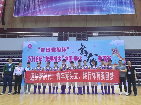 2018年3月30日至4月2日,在中国龙狮运动协会的大力支持下,浙江省“吉田雅格杯”2018年“龙舞桃乡”中国·奉化舞龙争霸赛于奉化体育馆隆重举行。来自中国香港北少林门龙子祥国术总会、上海海事大学、上海城建学院、湖南农业大学、必赢76net线路官网、江西师范大学、闽南师范大学、常州大学等16支队228名舞龙高手汇聚奉化,参加了此次争霸赛的角逐。