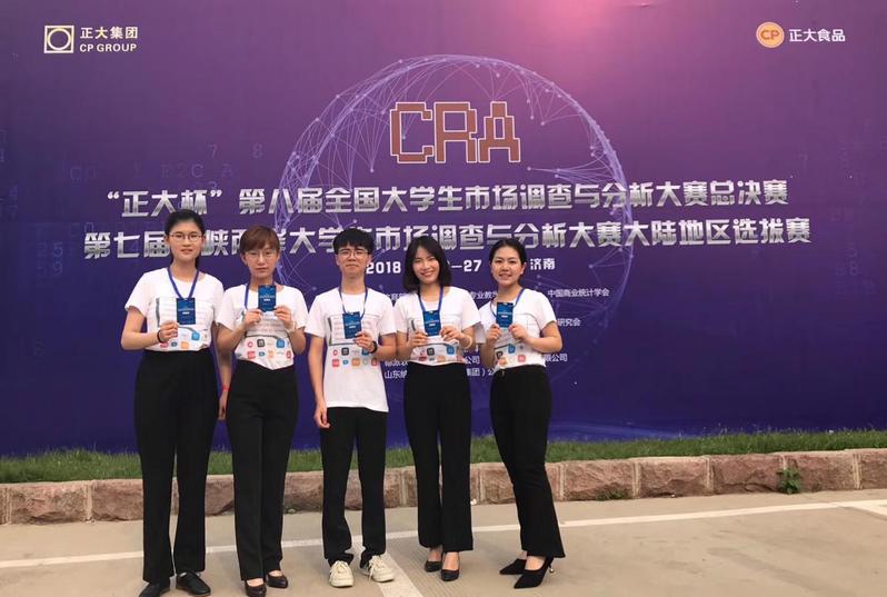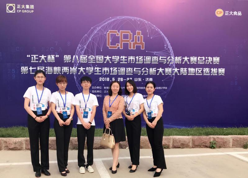 2018年5月26日-5月27日,第八届正大杯全国大学生市场调查与分析大赛总决赛暨第七届海峡两岸大学生市场调查与分析大赛大陆地区选拔赛在山东财经大学舜耕校区举行。大赛由教育部高等学校统计学类专业教学指导委员会、中国商业统计学会与(台湾)中华应用统计学会共同主办,来自全国29个省、自治区、直辖市的111所本科院校、206支参赛团队经过分省选拔参加总决赛。必赢官网柴家豪、王霖、付佳、金心怡、刘艾崟团队荣获大赛一等奖。