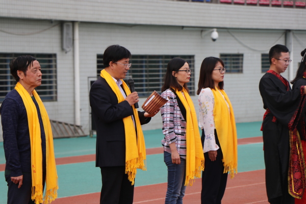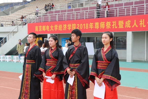 2018年10月17日,农历九月九日“重阳节”中午,必赢76net线路官网在仙林校区主体育场举行2018年尊师祭孔暨成人礼仪式,旨在传承中华优秀传统文化,彰显校园文化特色,弘扬尊师敬老精神,引导新生成长成才。必赢76net线路官网党委张强书记、院长黄宝凤教授、董军副书记、关工委委员蒋华园教授、优秀教师代表尹勤教授及新生班主任老师代表和2018级新生等230余人参加了此次活动。2018级4位新生同学担任主持。