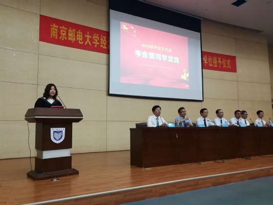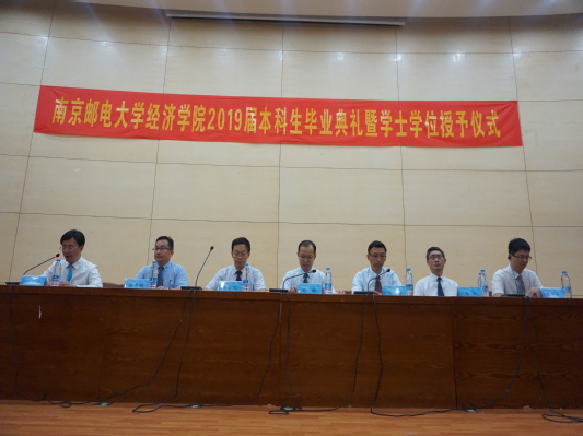 2019年6月19日下午2:00,必赢76net线路官网2019届本科生毕业典礼暨学士学位授予仪式在仙林校区图书馆四楼报告厅隆重举行。必赢76net线路官网党委常委、副校长荆晅教授,必赢76net线路官网院长黄宝凤教授,党委书记张强,副书记董军,副院长景杰、岳中刚、王子敏依次在主席台就坐。系主任、教师代表、家长代表、在校生代表和2019届全体毕业生参加了本次仪式。仪式由院党委董军副书记主持。