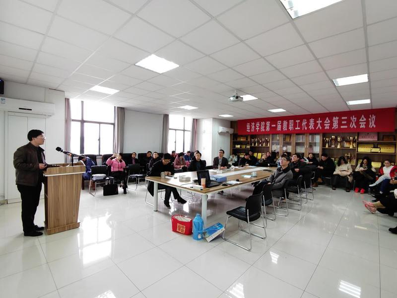 1月11日上午,必赢76net线路官网顺利召开第一届教职工代表大会第三次会议,全体工会会员参加,会议由院工会主席董军主持。