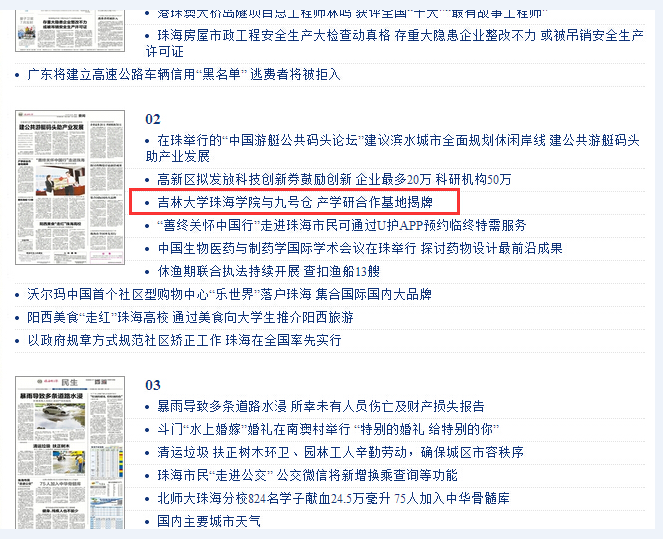《珠海特区报》刊文-《吉林大学珠海学院与九号仓产学研合作基地揭牌》