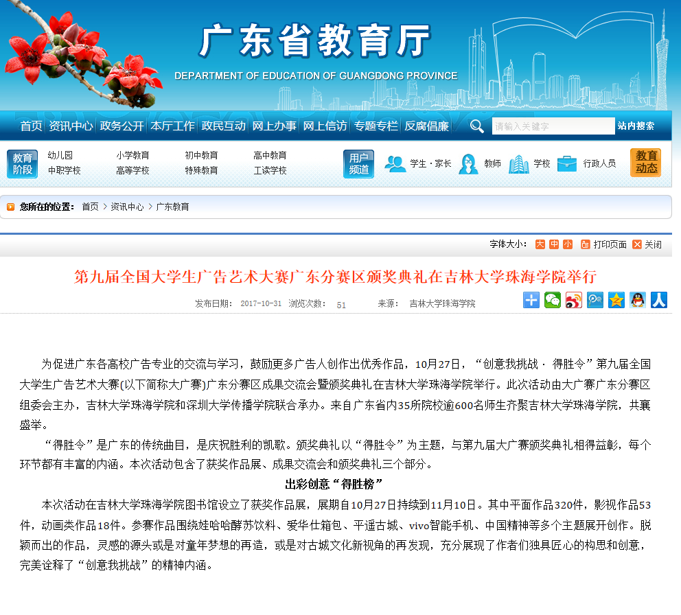广东省教育厅网站关于sunbet举行大广赛颁奖典礼的报道