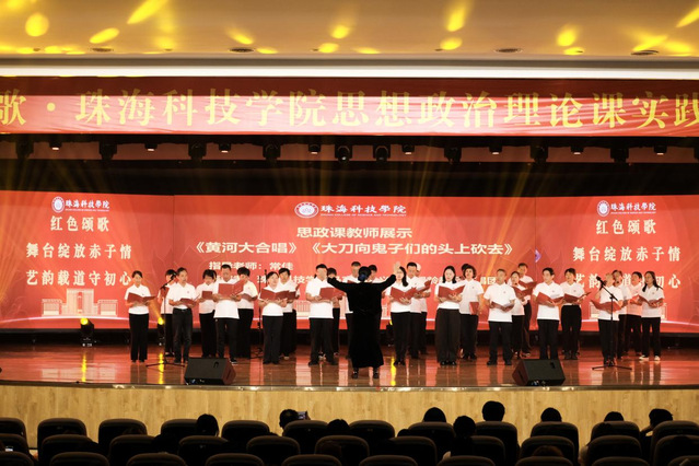 为深入贯彻习近平总书记关于“推进大中小学思政课一体化改革创新”、“不断拓展实践育人和网络育人空间和阵地”的重要指示,充分发挥高校思政课立德树人重要阵地作用,融合贯通大中小学思政课一体化育人链条,打造思想政治理论课实践教学育人新模式,2025年12月14日,由马克思主义学院、音乐舞蹈学院与校团委共同主办“红色颂歌”思想政治理论课实践教学展演在音乐舞蹈学院音乐厅顺利举行。学校副校长程春梅,各二级学院院长、副院长和金湾区实验学校、金湾区金山实验学校、珠海市第一中学平沙校区、金湾区金海岸中学、海华小学、中兴小学、海澄小学、连湾小学等多所中小学负责校领导及相关负责人与学校2025级新生等600余名师生共同观看展演,共同感受红色文化的力量与思政课实践教学的魅力。